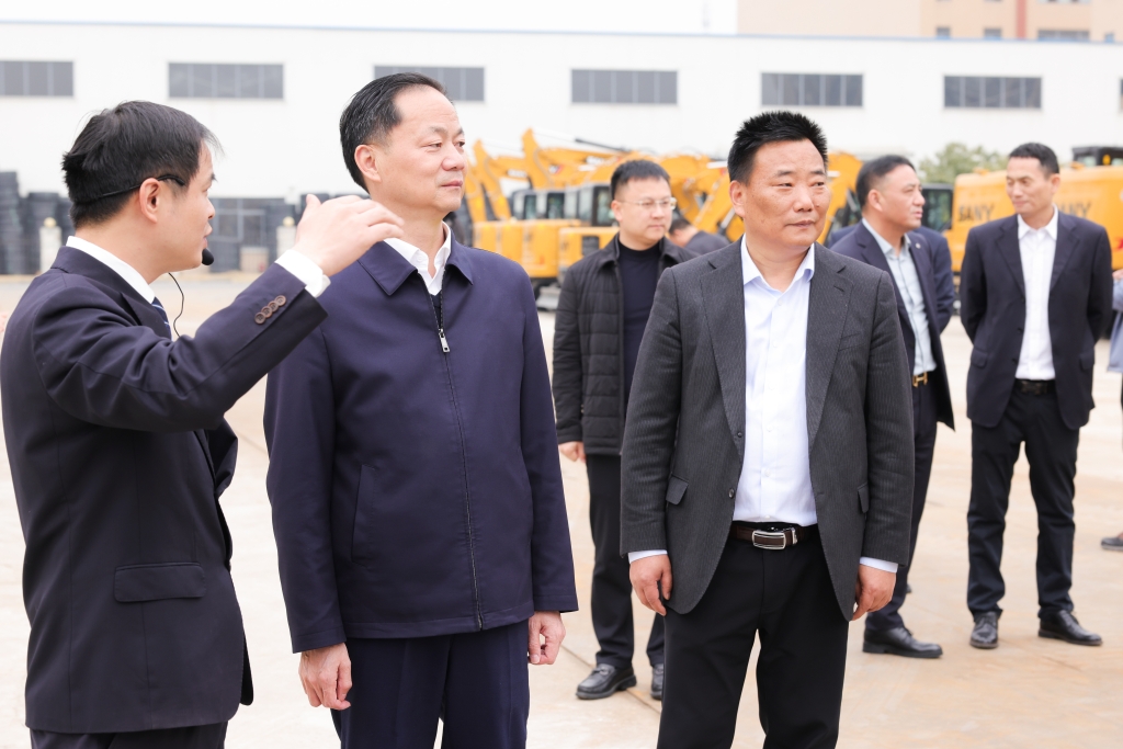 1月14日,臨湘市委書記王文華、市委常委、市委辦主任吳天星、市政府副市長(zhǎng)林路杰、市貿(mào)促會(huì)會(huì)長(zhǎng)彭艷、市委深改辦副主任陳帥、市貿(mào)促會(huì)副會(huì)長(zhǎng)黎鈞等一行領(lǐng)導(dǎo),在湖北省湖南商會(huì)會(huì)長(zhǎng)胡首東、常務(wù)副會(huì)長(zhǎng)陳育雄,副會(huì)長(zhǎng)雷君及商會(huì)秘書處劉偉等陪同下,蒞臨武漢九州龍工程機(jī)械有限公司調(diào)研指導(dǎo)。